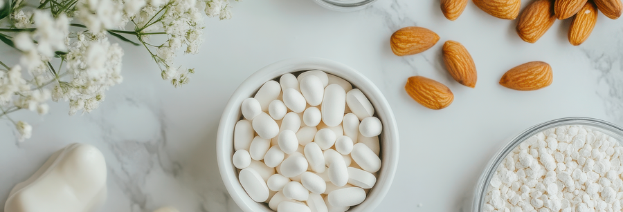 A vital antioxidant that preserves youth and resilience. Vitamin E protects against free radicals, soothes inflammation, and supports cell repair. It enhances smoothness, prevents UV damage, and keeps the skin hydrated and firm.